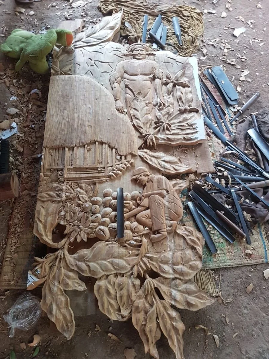 Inspired by the earliest known human artwork. Crafted from rain tree wood (kayu trembesi), painted with natural cake coloring, and finished with beeswax.